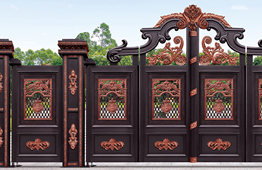 別墅庭院鋁藝大門材質(zhì)選用高端硬鋁合金型材,以及整體實(shí)心鑄鋁花件,純手工拼接制作而成。